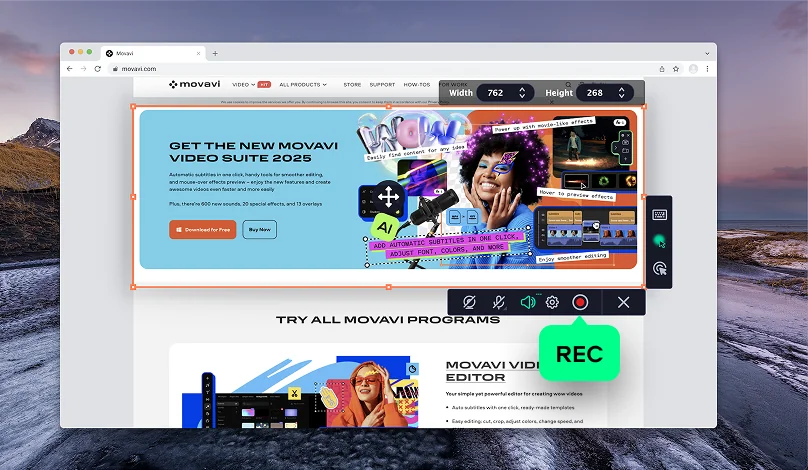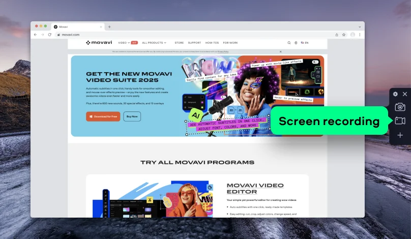 Movavi Screen Recorder is a screen capturing program that is fully compatible with Windows 11. Below, you’ll find a detailed guide on how to record your screen with Movavi’s tool.