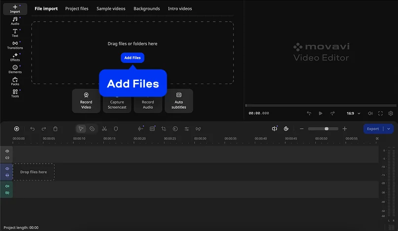 Click the Add Files button and choose the video and/or audio file you want to fix. Then drag your file onto the Timeline.