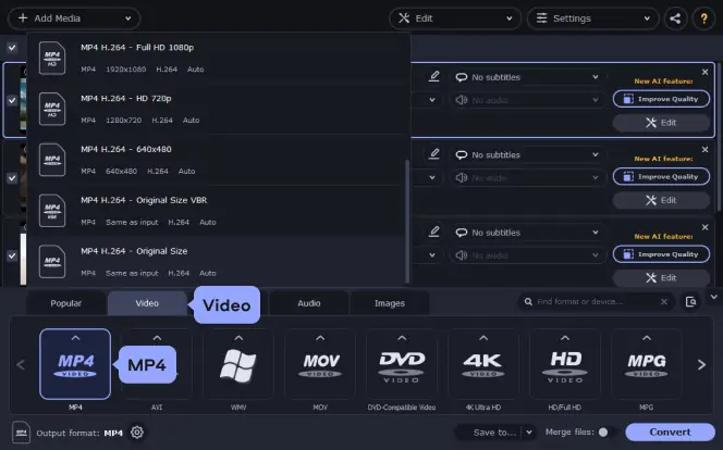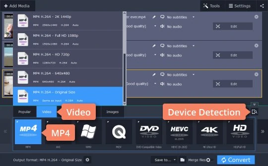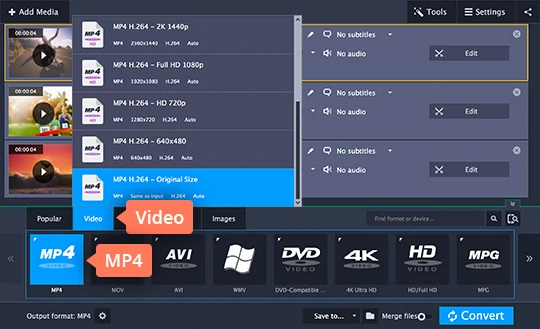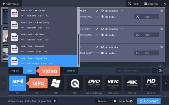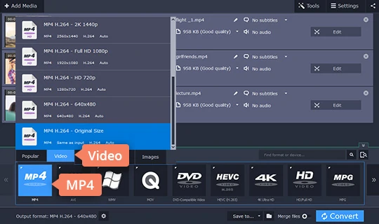 Wondering how to convert a video to MP4? Try an online video-to-MP4 converter or use its desktop alternative – Movavi Video Converter.