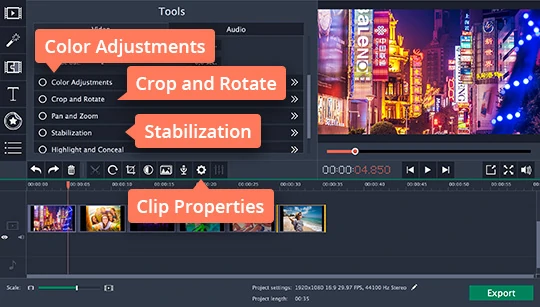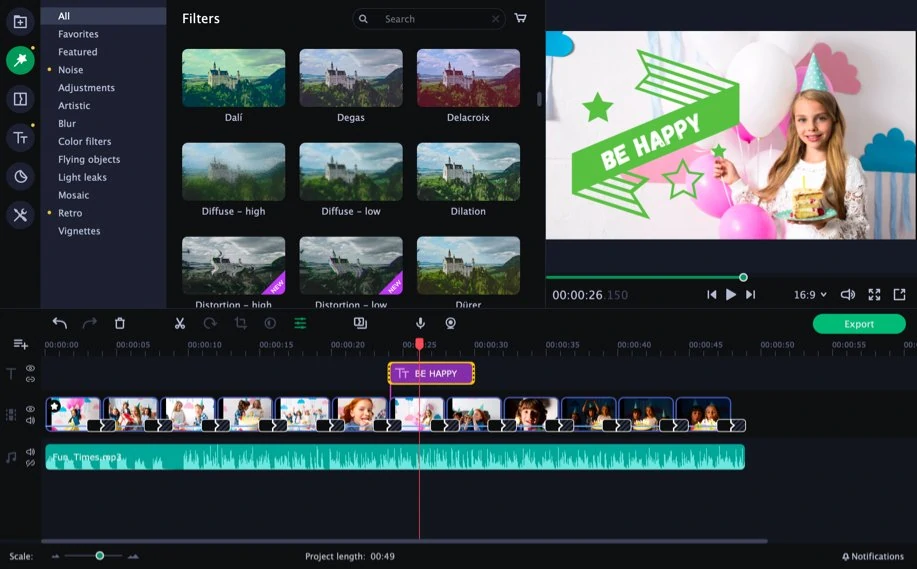 Want to add filter to a video? Movavi Video Editor Plus offers a wide range of video editing filters and tools.