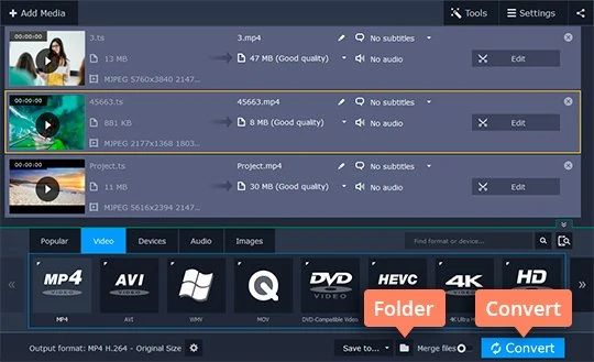 Wondering how to convert TS files to MP4? Download the Movavi's TS file converter for Windows or Mac and follow the step-by-step tutorial.