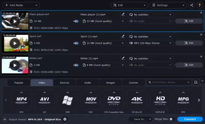 Need a fast FLV file converter? You can convert to FLV and back with Movavi! Just download the desktop app or use the online tool!