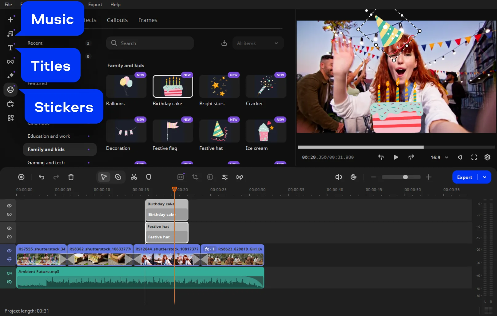 Birthday videos don’t come in one standard format, and Movavi Video Editor doesn’t treat them that way either. The desktop editor gives you enough room to experiment, adjust, and shape something that actually fits the person you’re celebrating, whether the mood leans sentimental, funny, or somewhere in between.