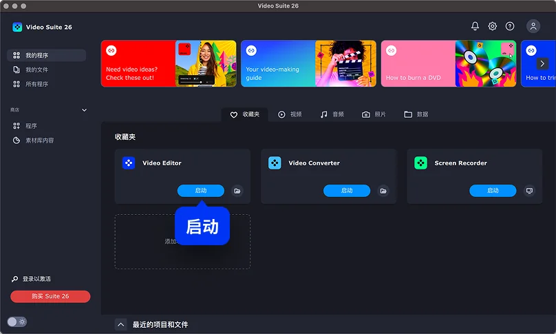 重新启动 Movavi Video Suite。这将激活 Video Suite 及其所有程序。