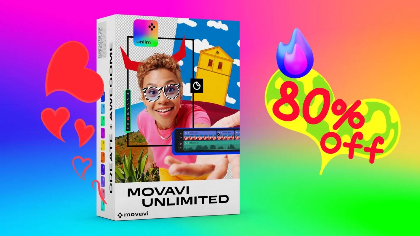 No explanation needed – get Movavi Unlimited. All our programs in one: video and photo editing, plus 10,000+ effects. Now 80% off.