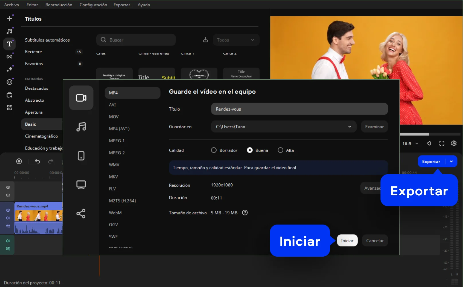 Cuando hayas terminado de añadir y editar los subtítulos, guarda el clip y expórtalo en el formato que más te convenga.