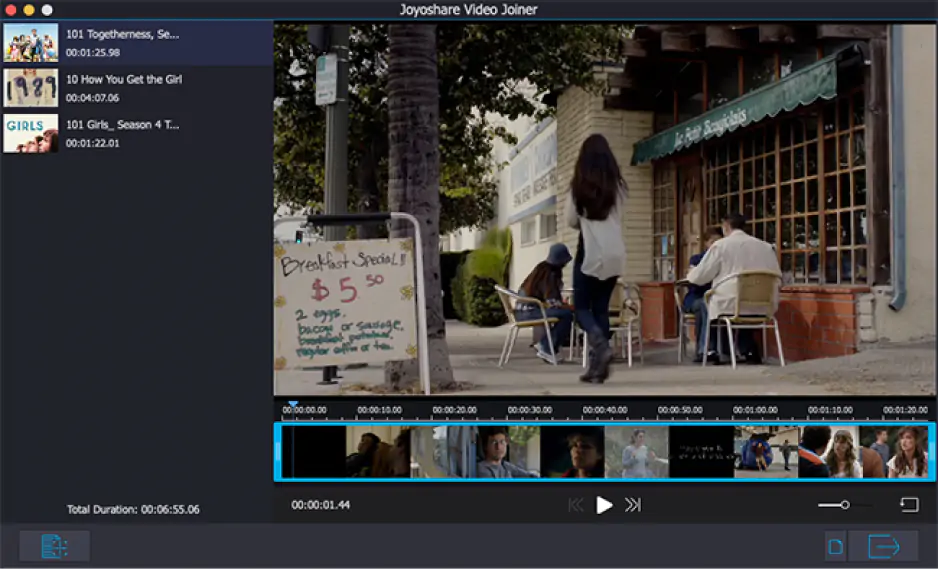Experimente los videos fusionados como un solo archivo usando el botón Exportar.