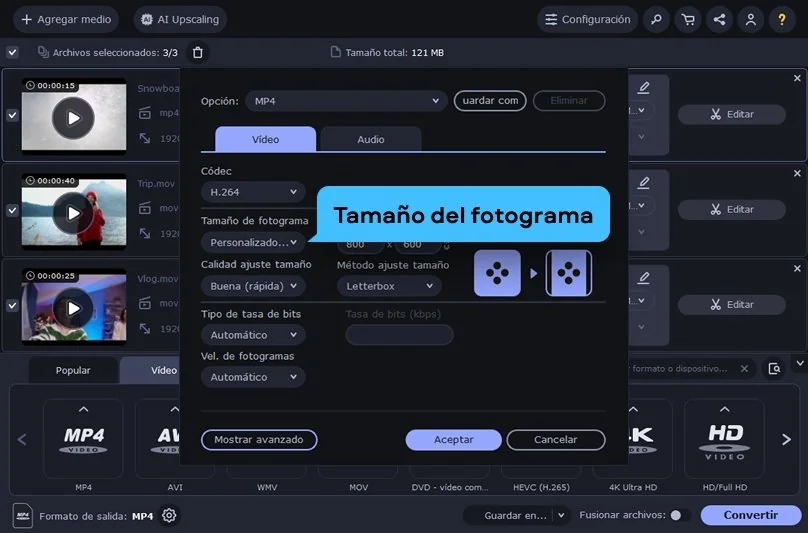 Cualquier programa que permita configurar la resolución a mano te sirve. Abres el archivo, entras en la parte de ajustes avanzados y eliges la resolución que encaje con lo que buscas. En Movavi puedes hacerlo desde la sección Tamaño del fotograma de manera bastante directa.