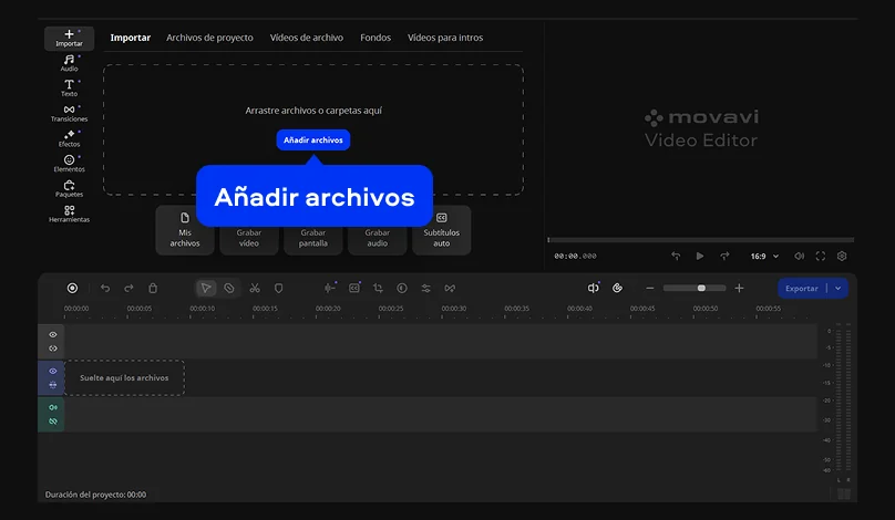 *La versión gratuita de Movavi Video Editor podría tener las restricciones siguientes en función de la compilación: marca de agua en los clips exportados, límite de 60 segundos en el vídeo o del 1/2 en el audio, o algunas características avanzadas no disponibles al exportar vídeos.