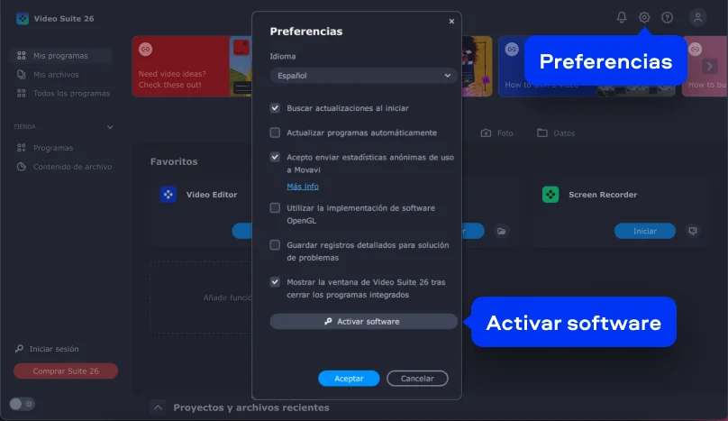 Reinicia Movavi Video Suite. Esto activará Video Suite y todos sus programas.