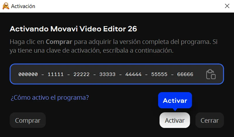 En esta página se explica cómo activar los programas de Movavi para Windows. También encontrará una sección de preguntas frecuentes que explica qué hacer si se produce un error en algún paso del proceso.