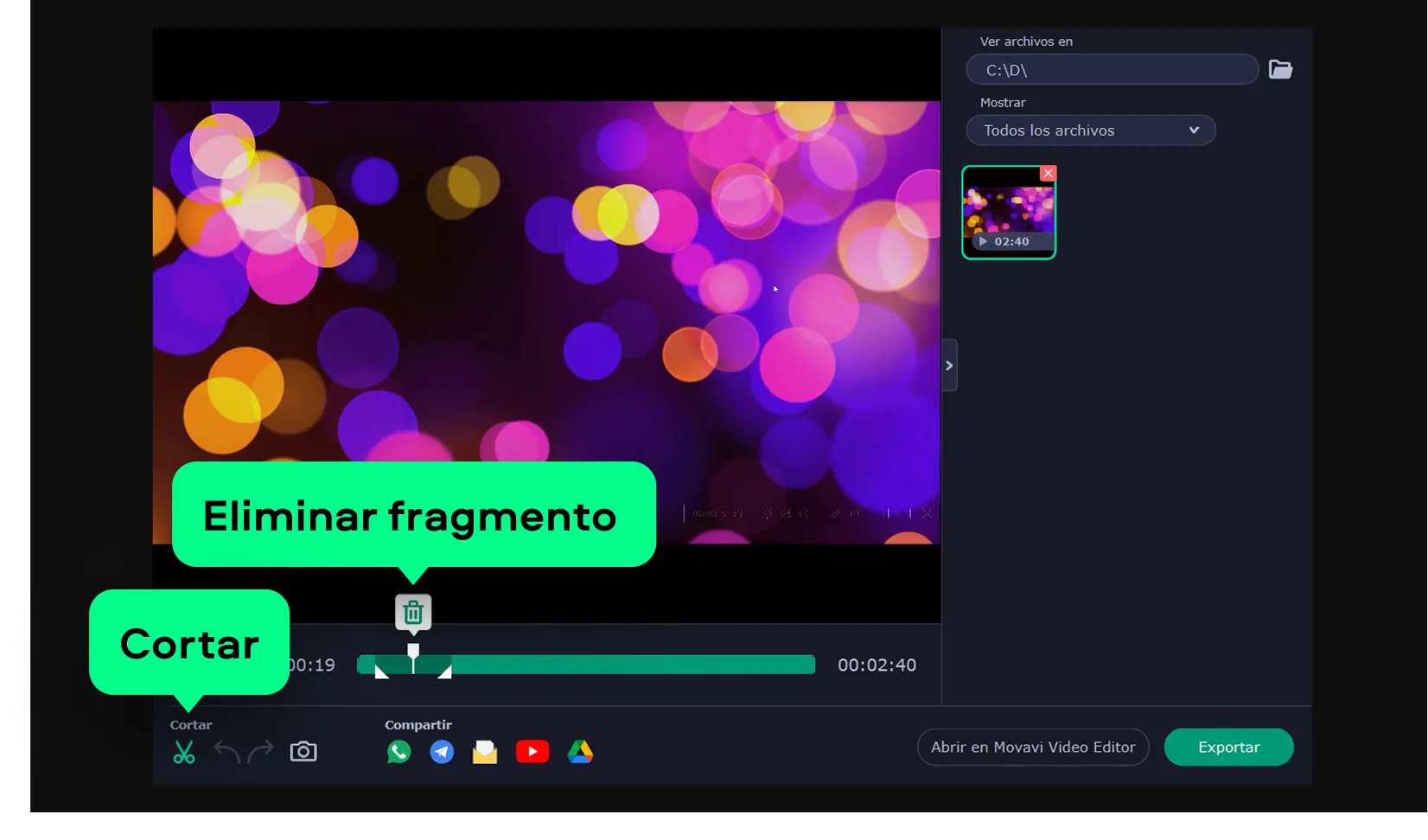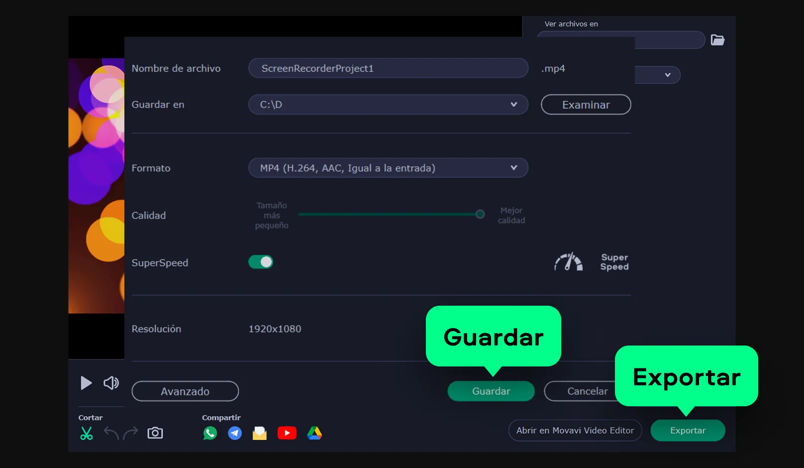 Además, puedes pausar la grabación, resaltar clics o movimientos del cursor – útil si estás explicando algo – y luego usar su editor integrado para recortar o limpiar el vídeo antes de exportarlo.