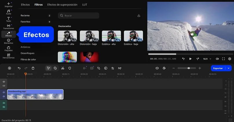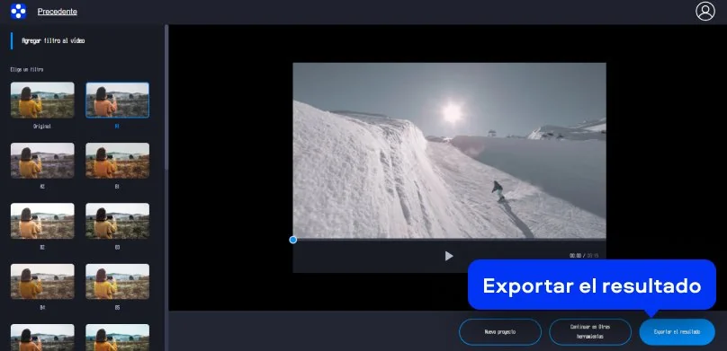 La herramienta ofrece filtros para video gratis que puedes aplicar fácilmente para darle un estilo distinto a tu video. Si quieres aplicar filtros a un video online, sigue los pasos a continuación.