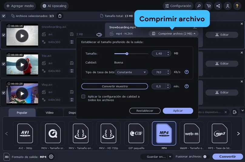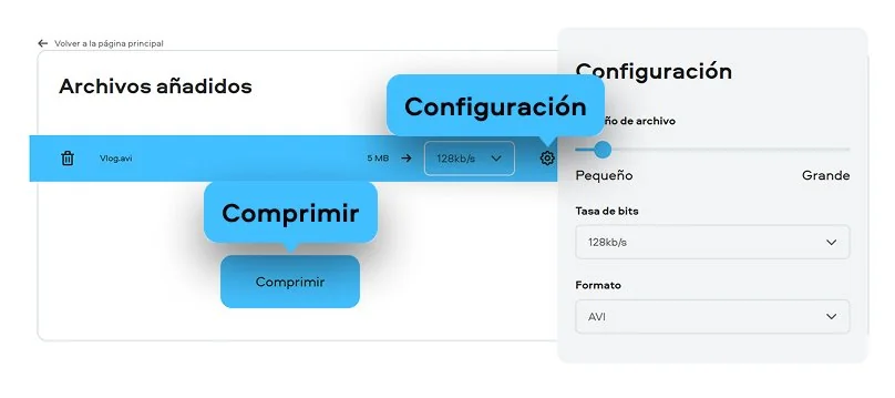 Y no solo estás reduciendo el tamaño de tu archivo. Puedes ajustar parámetros clave como la calidad, la resolución o el nivel de compresión. Cada cambio tiene un efecto claro, visible. Puedes encontrar ese punto justo donde el archivo pesa menos, pero sigue viéndose bien. Y eso, cuando trabajas con contenido para compartir rápido, marca la diferencia. ¿Cómo comprimir vídeos AVI con esta herramienta online gratis? Consulta esta breve guía: