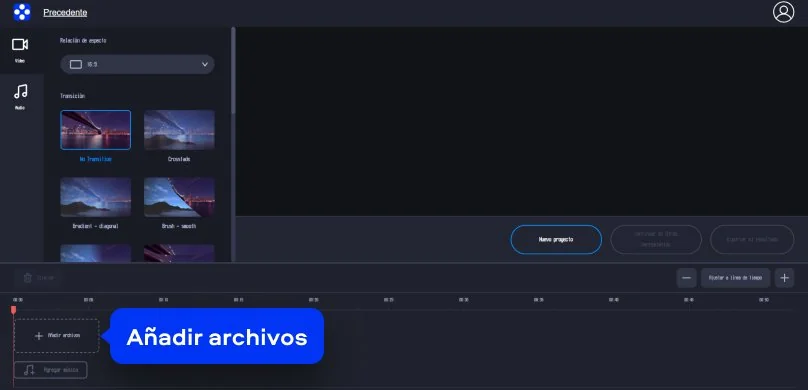 Para empezar a crear tu proyecto, sigue estos sencillos pasos en el editor de video web de Movavi.