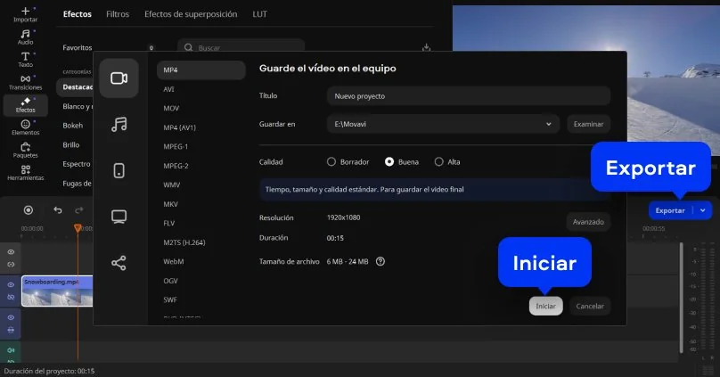 Movavi editor de video online te permite crear y ajustar tus proyectos directamente en el navegador, sin descargas ni instalaciones. Puedes subir archivos desde tu PC o smartphone y comenzar al instante. Además, es compatible con formatos populares como MP4 y MOV, lo que facilita empezar a trabajar sin pasos adicionales si necesitas editar video online de forma rápida y sencilla.