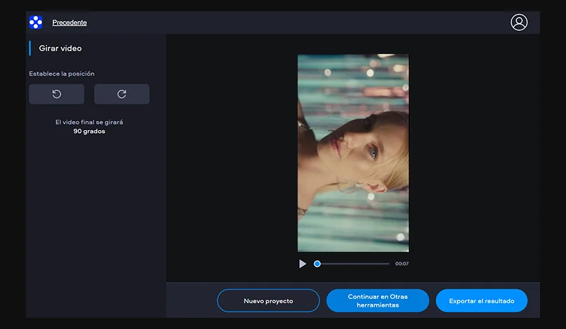 Movavi ofrece una herramienta online muy cómoda para ajustar la orientación directamente desde el navegador. Es ideal si quiero girar video en segundos, sin instalar programas y con un proceso claro. También funciona muy bien para clips cortos que quiero compartir rápido en redes o enviar por mensajería.