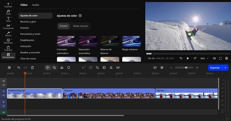 De hecho, es una de las formas más sencillas de aprender cómo unir videos sin experiencia previa, porque todo el proceso es directo: subo los clips, los organizo y exporto el resultado.