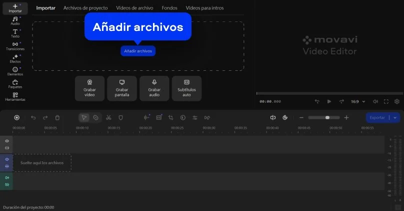 Haz clic en Añadir archivos para importar tu vídeo y arrástralo desde el panel de medios a la línea de tiempo.
