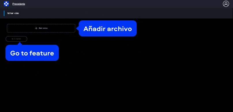 Haz clic en Añadir archivo y elige el video desde tu dispositivo o computadora. El archivo se carga solo y, tras unos segundos de preparación, ya puedes trabajar con él sin hacer nada más. Pulsa Go to feature para entrar en la herramienta de edición.