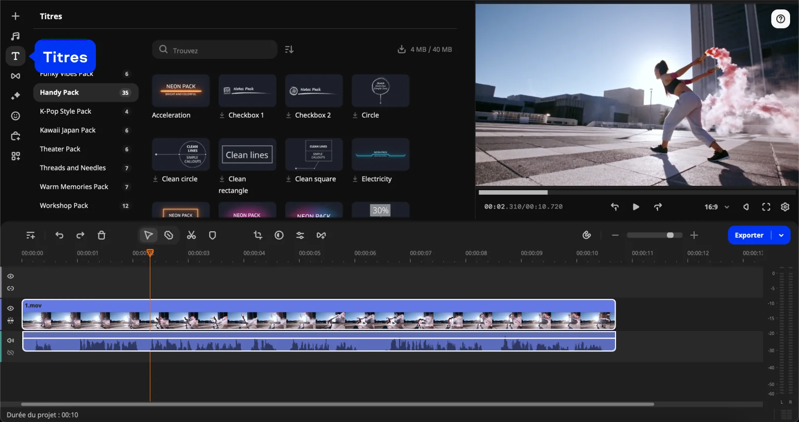 Movavi Video Editor est conçu pour être aussi simple à utiliser que possible tout en offrant à l'utilisateur un large sélection d'effets de qualité professionnelle. À l’usage, tout est fluide, logique, presque intuitif, ce qui n’est pas si courant. Le logiciel est disponible sous forme d'application pour Windows et Mac. Un téléchargement gratuit est disponible afin que vous puissiez essayer Movavi Video Editor avant de l'acheter. Je l’ai testé plusieurs jours sur différents projets avant de me faire un avis, et il a tenu la route à chaque fois. Ce programme est particulièrement utile grâce à sa fonction de création automatique de sous-titres. Sa version 26, la plus récente, propose la traduction instantanée des sous-titres en anglais ainsi que plus de 30 nouveaux styles de sous-titres. Notez toutefois que les anciennes versions des systèmes d'exploitation ne sont plus prises en charge.