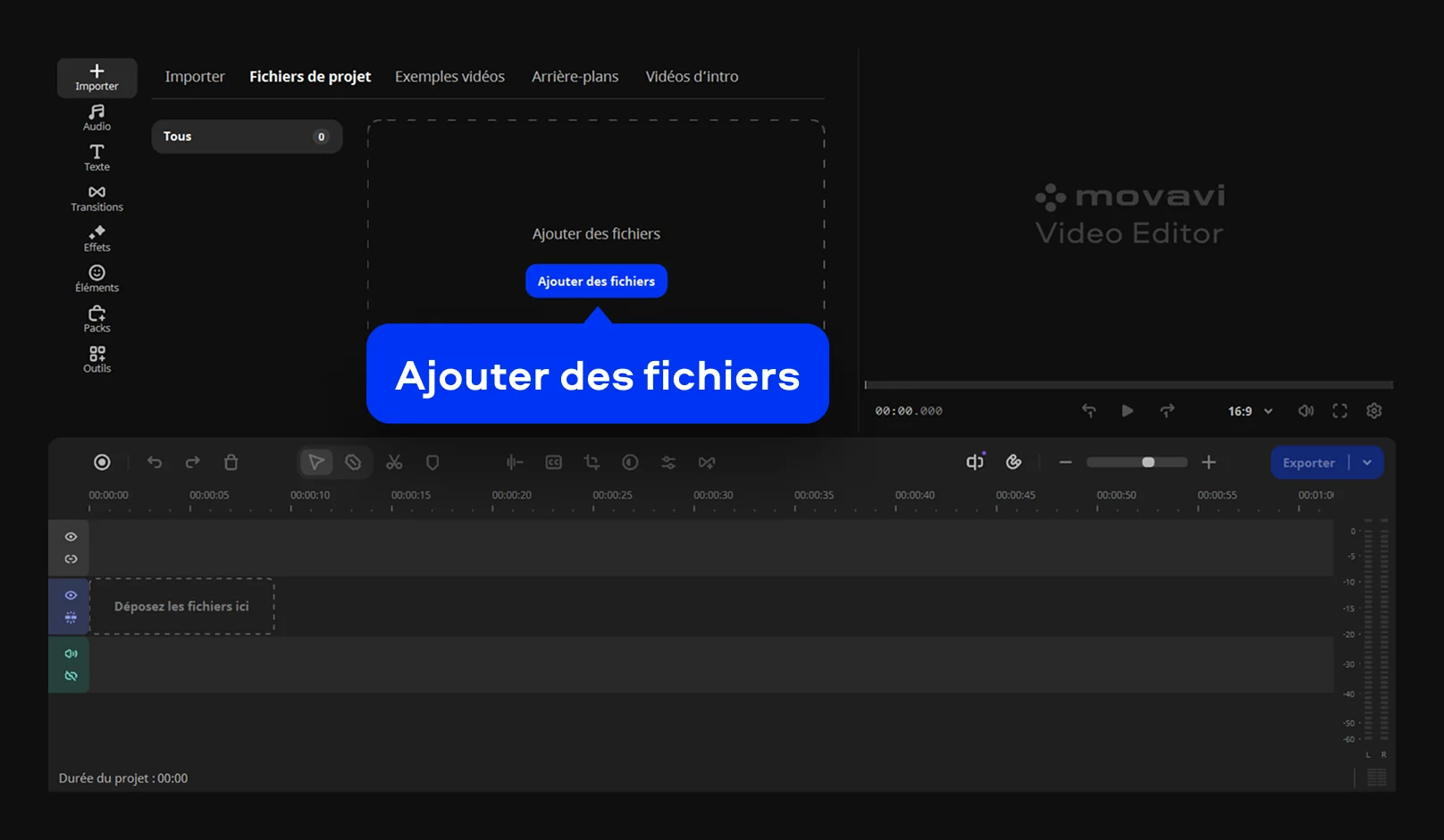 *La version gratuite de Movavi Video Editor peut présenter les restrictions suivantes en fonction de la version : filigrane sur les clips exportés, limite de 60 secondes pour la vidéo ou de 1/2 pour l'audio, et/ou certaines fonctions avancées indisponibles lors de l'exportation de vidéos.