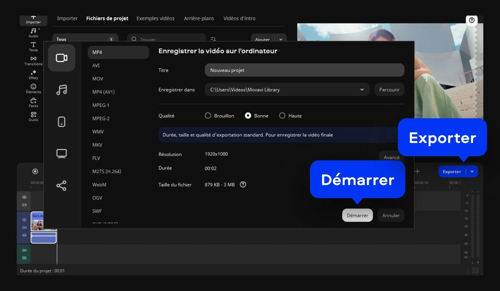 Movavi Video Editor, que ce soit sur Windows ou sur Mac, reste le plus « pro ». Tout est fluide, carré, et les outils de montage font vraiment plaisir. J’ai aimé la sensation de contrôle, la facilité avec laquelle on peut couper, ajuster, caler la musique pile où il faut. Ce n’est pas le plus rapide à prendre en main, mais une fois qu’on y est, difficile de revenir à quelque chose de plus basique. Et la version d’essai gratuite permet de se faire une idée sans s’engager, ce qui est toujours un bon point.