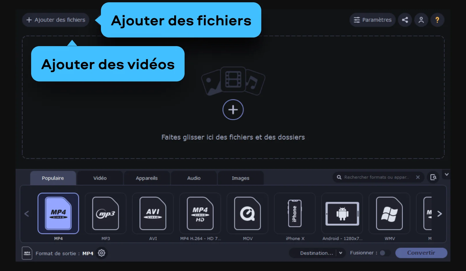 Peu importe ce que vous voulez faire : conserver le format de votre vidéo ou le changer – Movavi Video Converter le fera en peu de temps. Si vous avez besoin de convertir une vidéo 4/3 en 16/9 gratuitement, il suffit de télécharger la version du programme compatible avec votre système d'exploitation et suivre ces instructions étape par étape pour oublier les problèmes de format d'écran.