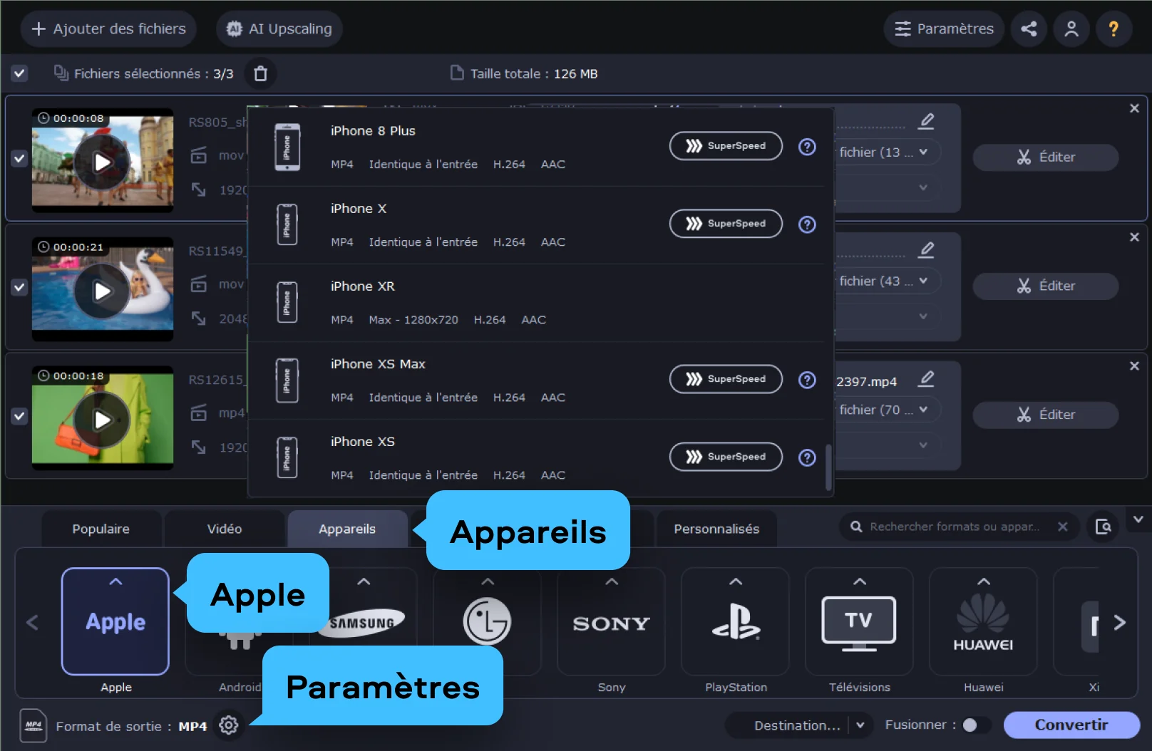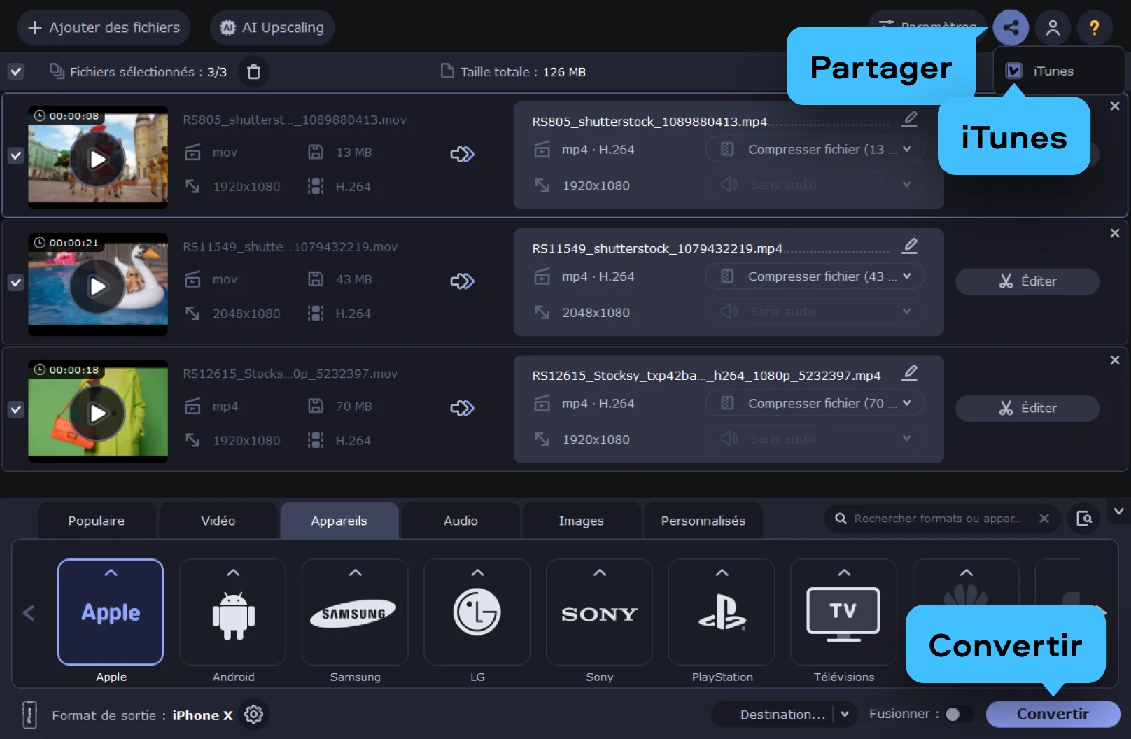 Si votre vidéo ne figure pas dans cette liste, Movavi Video Converter entre en scène pour convertir vos vidéos dans un format compatible iTunes. C’est un programme polyvalent qui facilite la conversion de vidéos et d’audios et leur transfert direct vers la médiathèque.