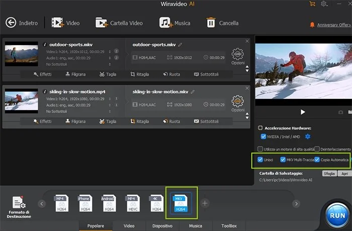 Movavi Video Converter supporta tutti i formati più diffusi, inclusi .MKV, MP4 e AVI. La conversione da MKV a MP4 avviene rapidamente e senza perdita di qualità. Offre strumenti di editing base come taglio, rotazione e regolazione del colore. Ho testato personalmente la compressione di file HD per trasferirli su iPad e il risultato è stato sorprendentemente preciso.