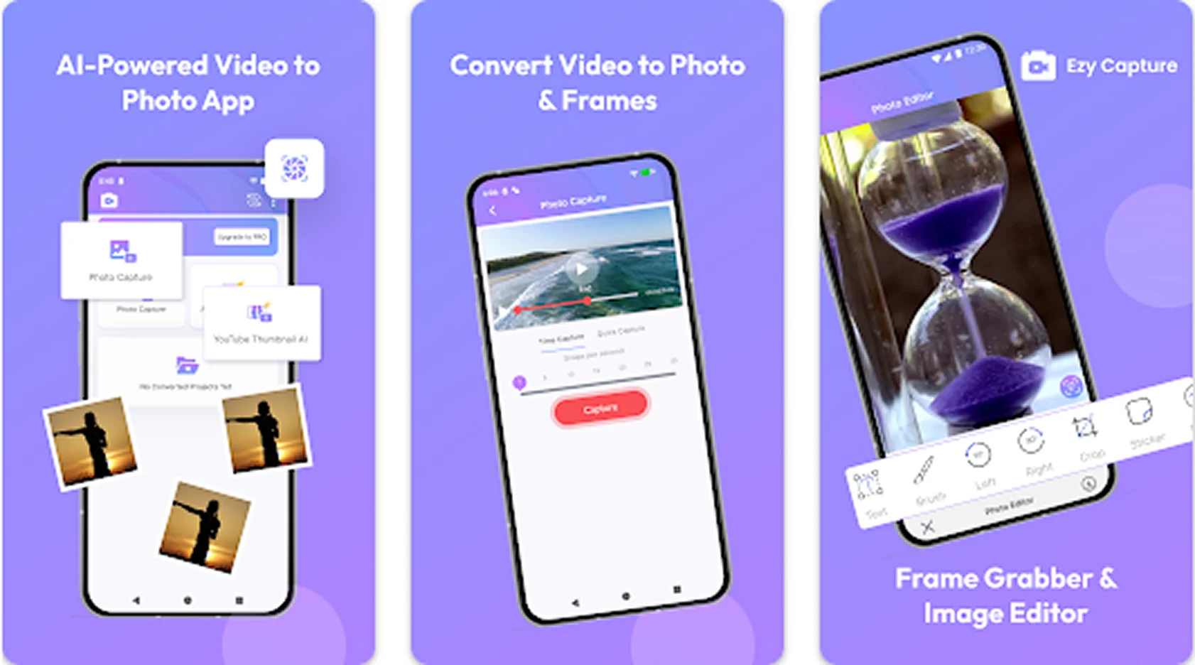 È possibile ricavare foto da video con un solo tocco e salvarle in alta qualità, perfette per social network o stampa. Include strumenti di navigazione del fotogramma per scegliere manualmente l’istante preciso.