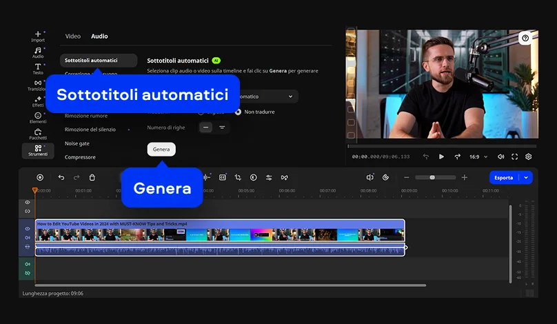 Crea sottotitoli automatici con un solo clic