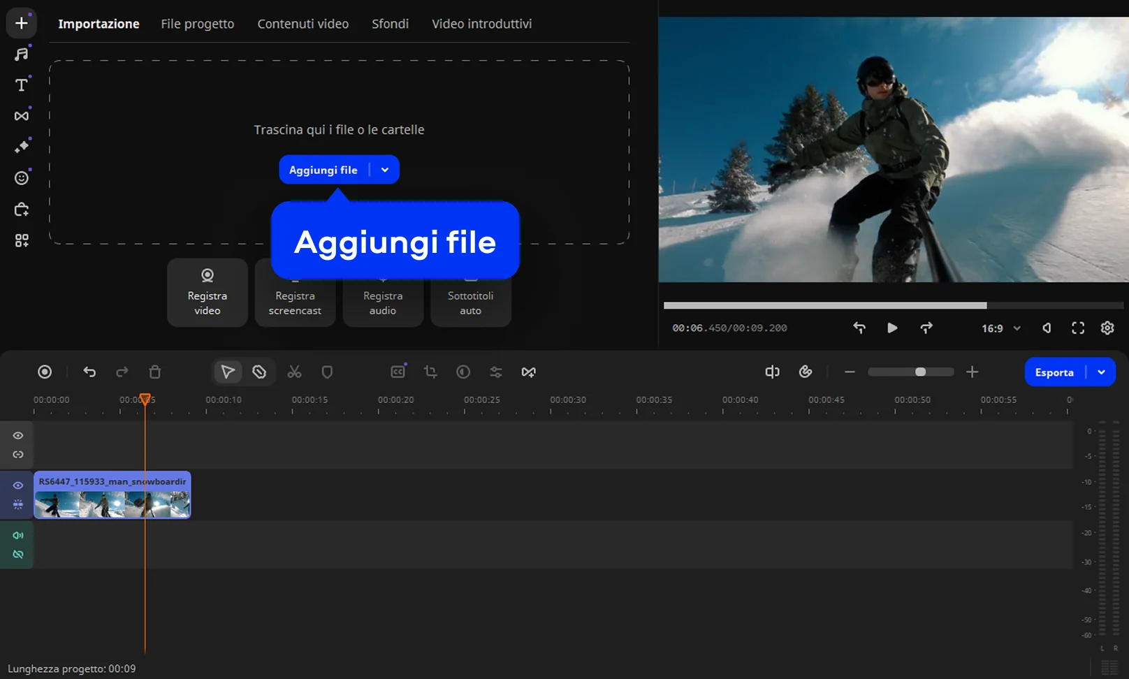 Passo 1. Importa il video nel progetto