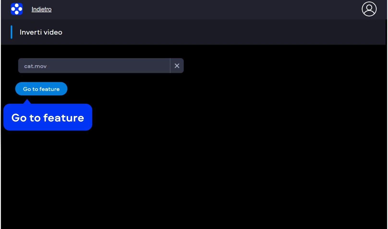 Clicca sul pulsante Go to feature. Il programma cambia la direzione di riproduzione e il video parte dalla fine verso l’inizio.