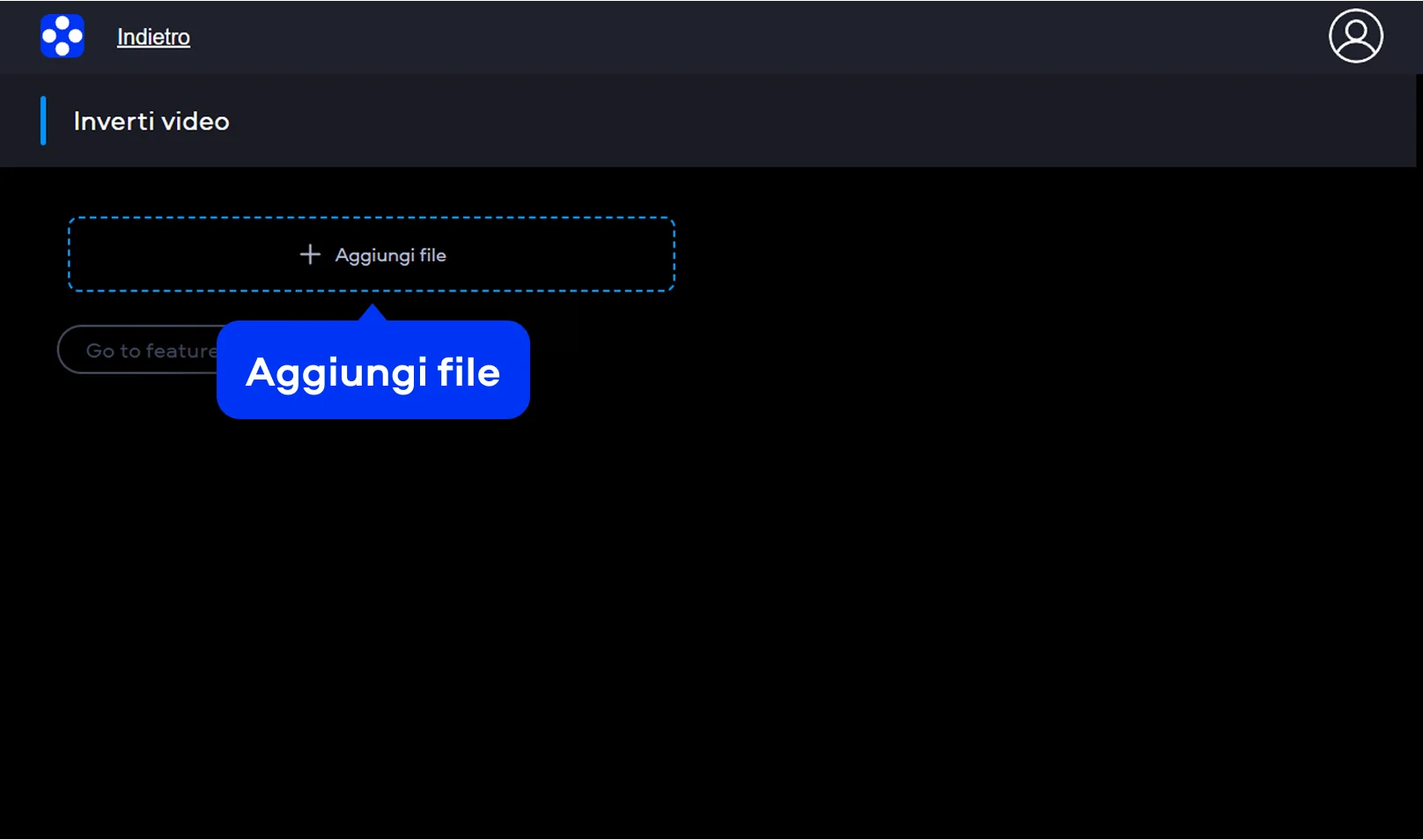 Clicca sul pulsante Aggiungi file e carica il video che vuoi invertire. Il file viene subito caricato nell’editor ed è pronto per essere modificato.