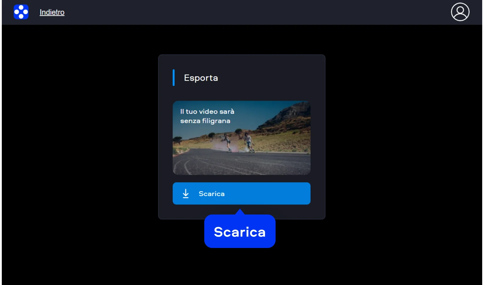 Una volta terminata l'elaborazione del video, clicca su Scarica. Il video invertito viene elaborato online e scaricato direttamente sul tuo dispositivo.