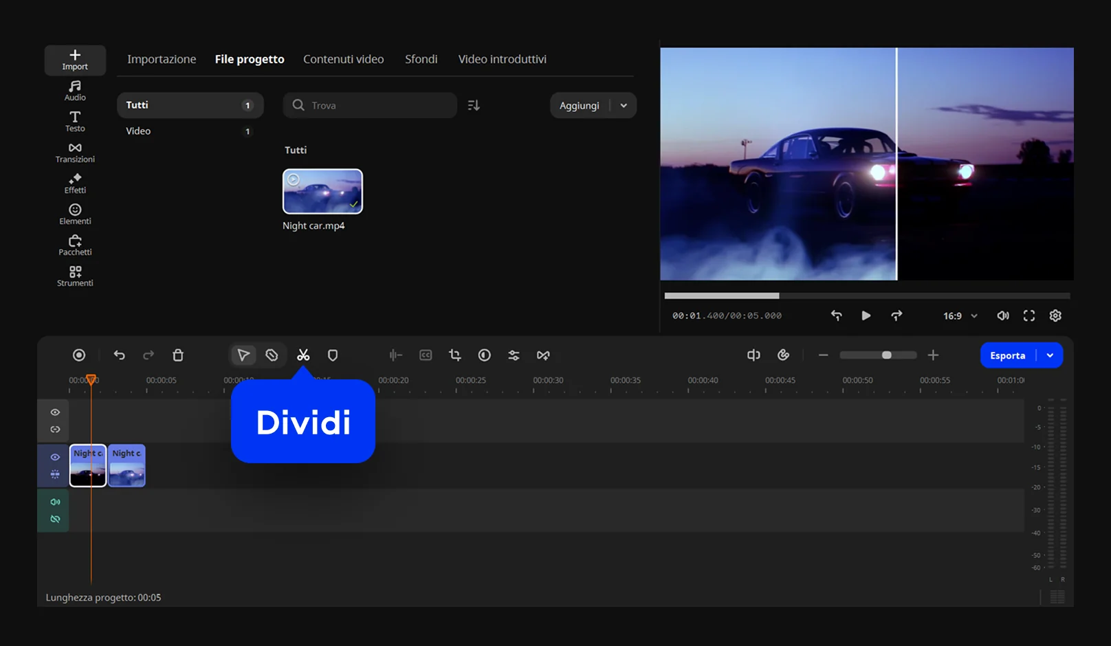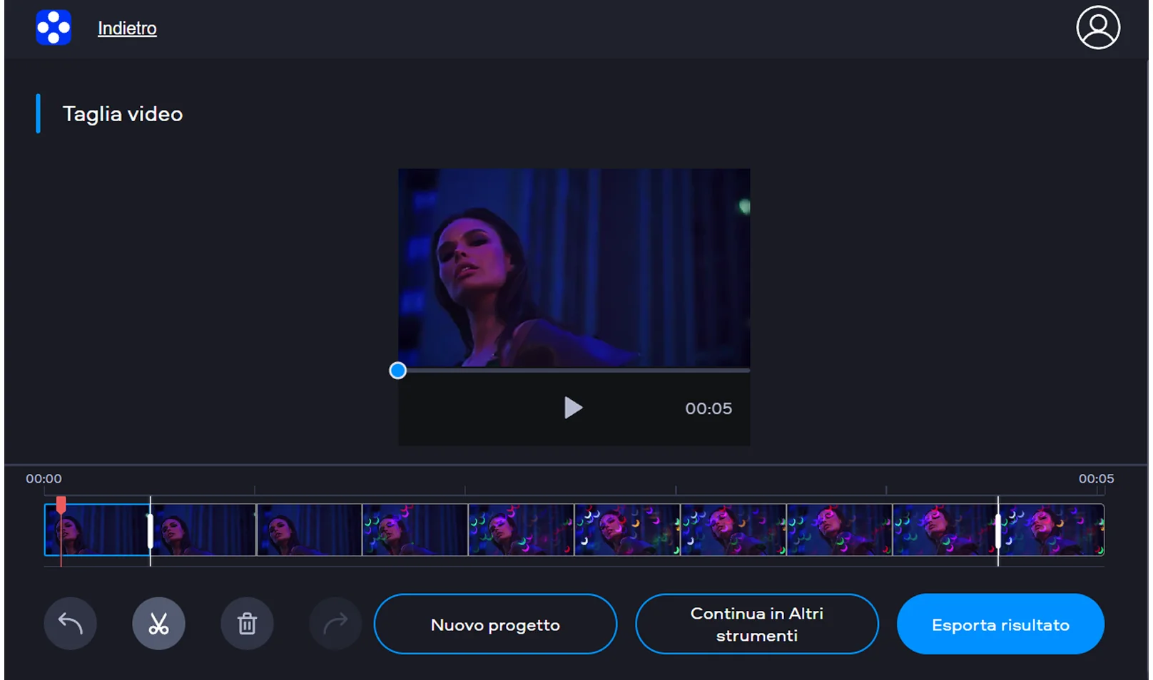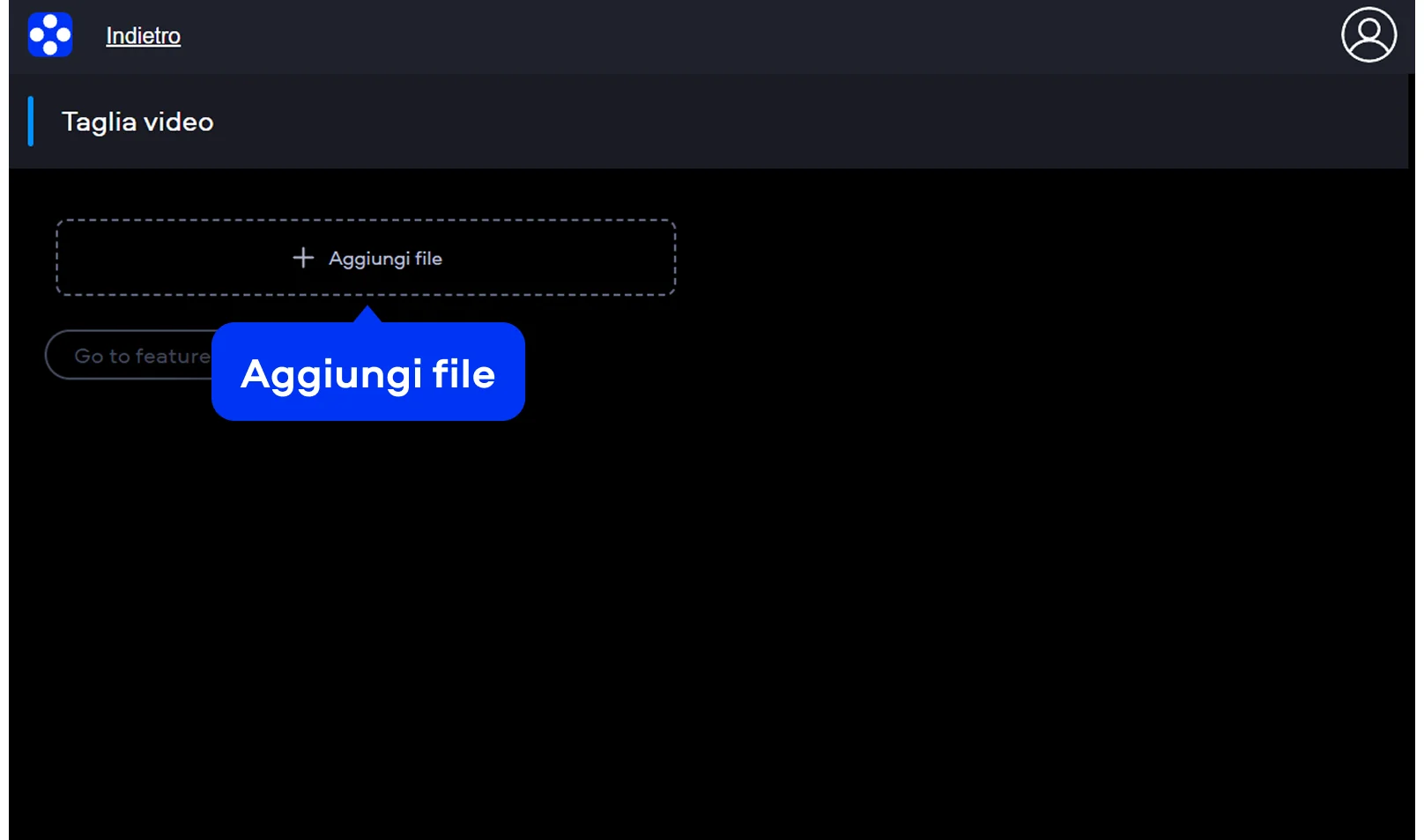 Apri la pagina di Movavi video cutter e fai clic sul pulsante Aggiungi file situato nel banner principale. Seleziona il video dal tuo dispositivo e attendi il completamento del caricamento per iniziare a lavorare sul file.