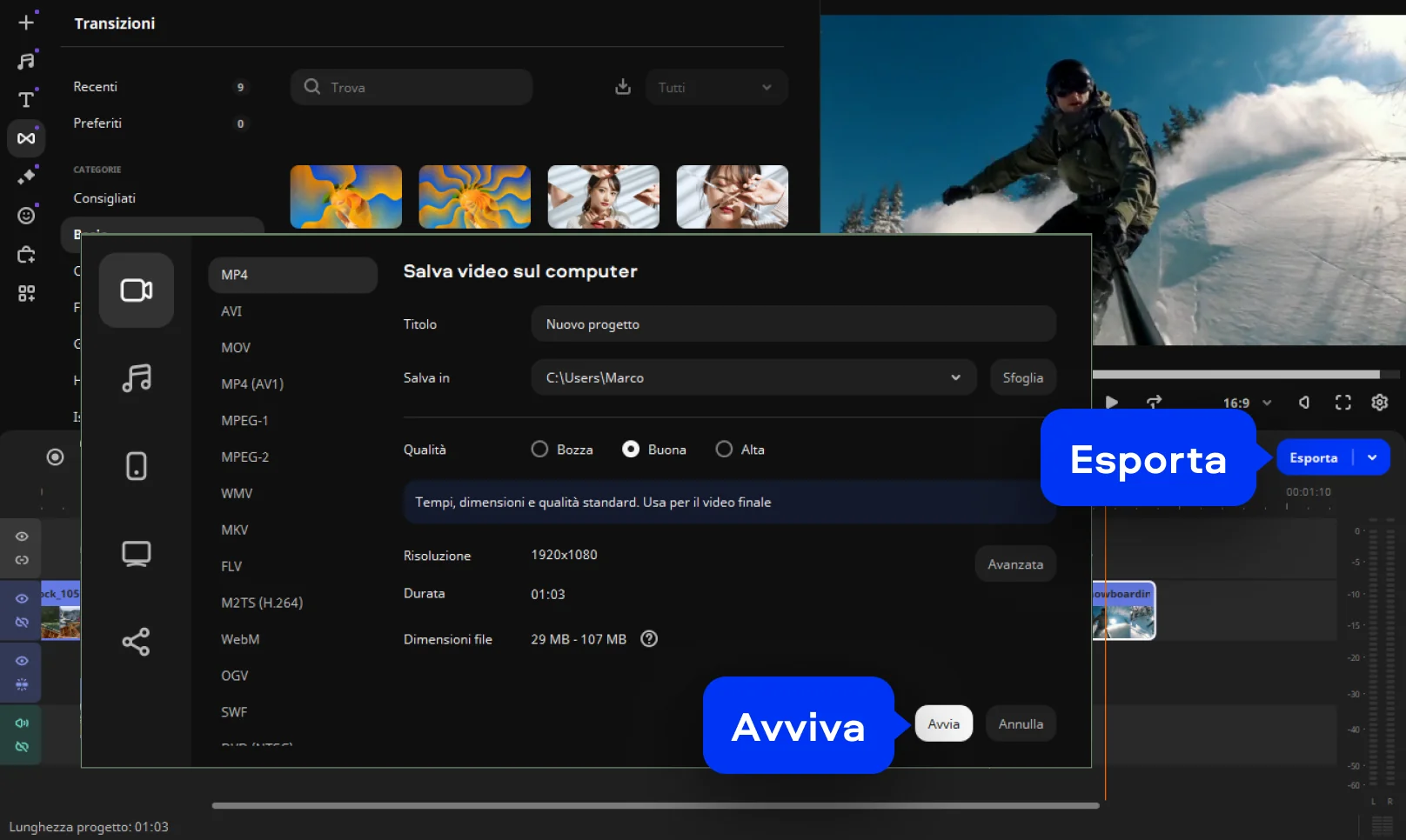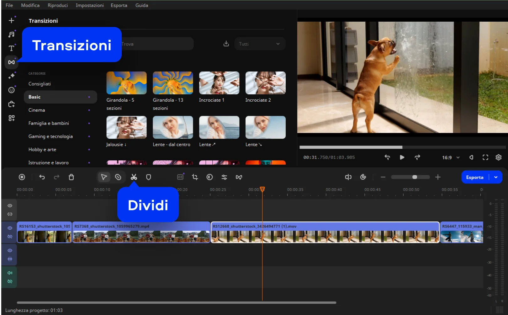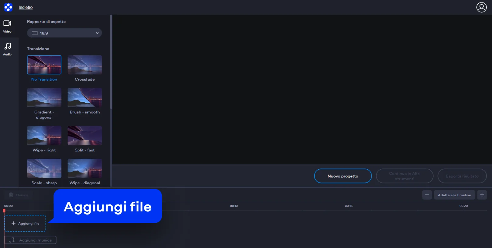 Se ti stai chiedendo come unire più video con lo strumento online Movavi, segui questi semplici passaggi: