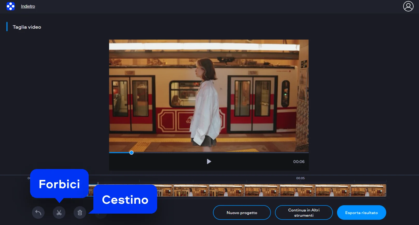 Il video cutter online di Movavi è una soluzione gratis pensata per modificare i video direttamente dal browser, senza bisogno di installare software sul PC. Lo strumento offre un’interfaccia chiara e un percorso guidato che rende semplice dividere video in più parti, anche per chi non ha esperienza nel montaggio. Grazie alla gestione intuitiva dei tagli, puoi ottenere risultati precisi in poco tempo e adattare i contenuti a diverse esigenze.