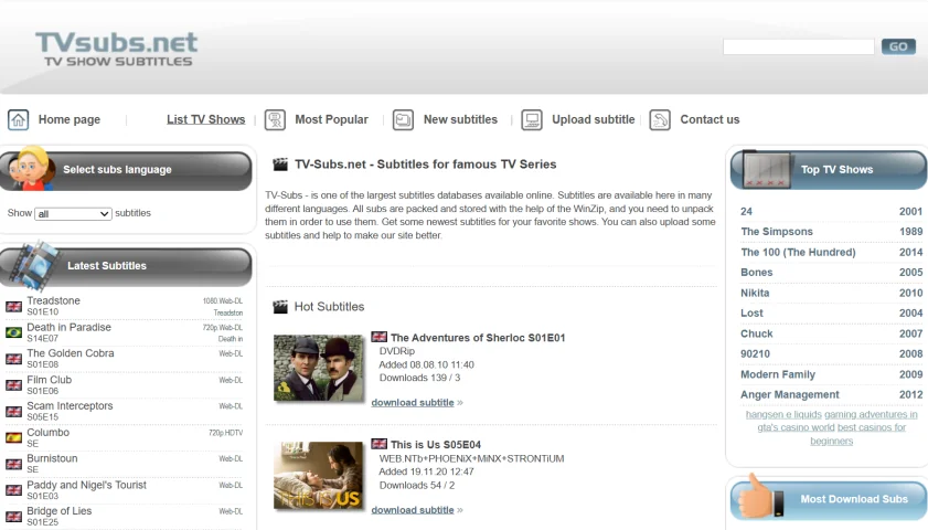 저희가 직접 사용해 본 TVsubs.net은 ‘TV 시리즈 특화’와 ‘전문적인 정리’라는 두 가지 키워드로 정리할 수 있었습니다. 이 사이트는 TV 프로그램의 시즌별, 에피소드별로 자막을 세밀하게 분류하여 원하는 자료를 찾는 과정을 간소화해줍니다. 16가지의 핵심 언어를 공식적으로 지원하며 활발한 커뮤니티를 바탕으로 TV 시리즈 팬들에게 맞춤형 라이브러리를 제공한다는 점이 큰 장점입니다. 다만, 웹사이트 디자인이 다소 오래되어 보이고, 일부 사용자는 다운로드 과정이나 광고로 인해 불편함을 느낄 수 있다는 피드백이 있습니다. 그럼에도 불구하고, 방대한 TV 프로그램 자막을 빠르고 정확하게 찾고자 하는 사용자들에게는 여전히 강력히 추천할 만한 전문적인 사이트입니다.