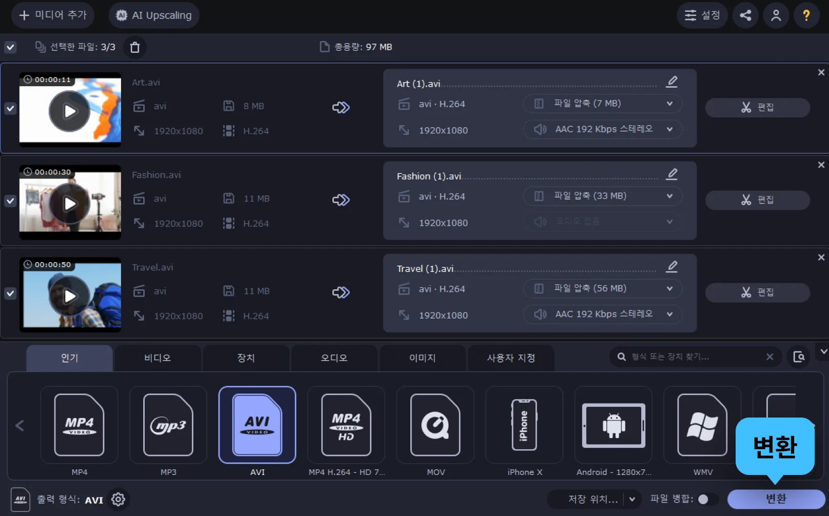 AVI 파일을 압축할 수 있나요?