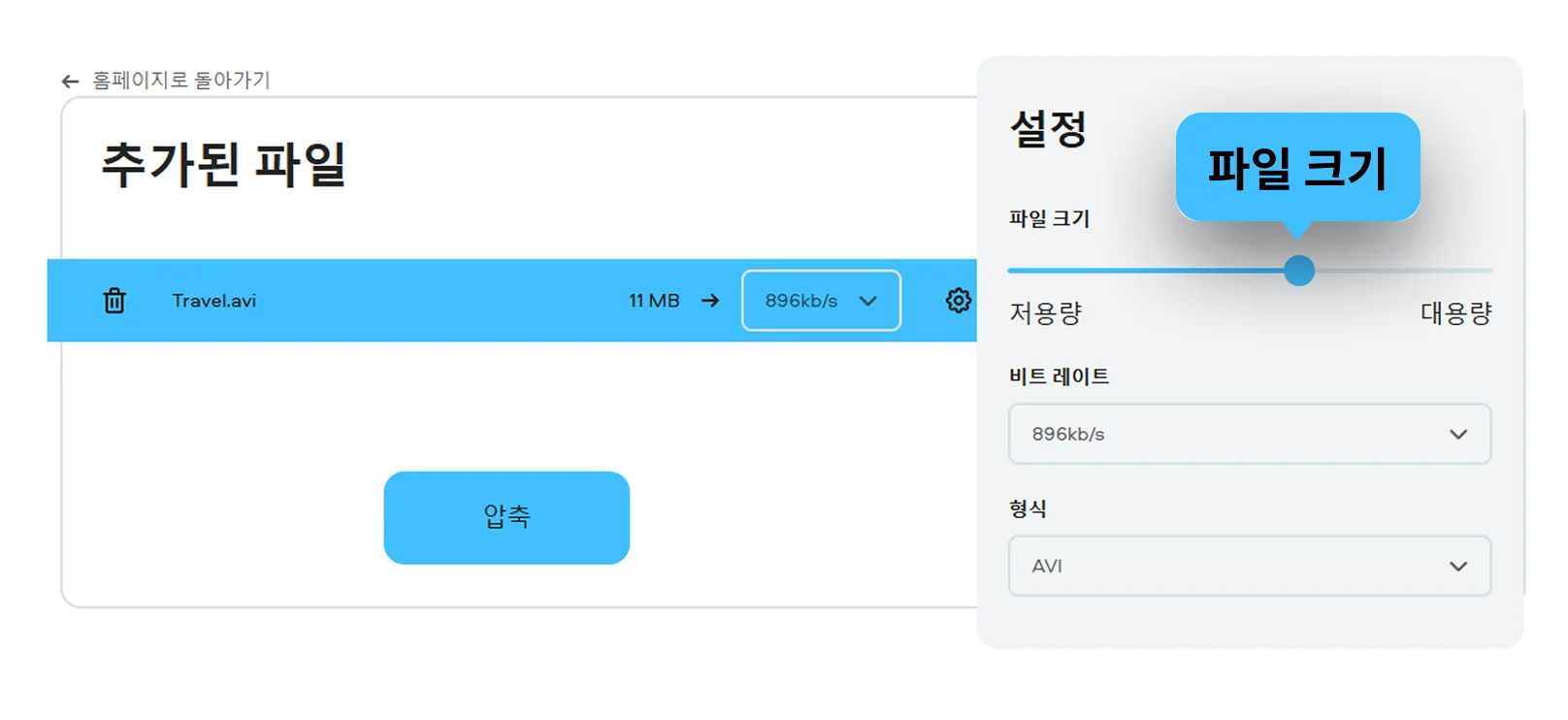 AVI 용량 줄이기 선택 파일이 업로드되면 원하는 압축 수준을 설정합니다.