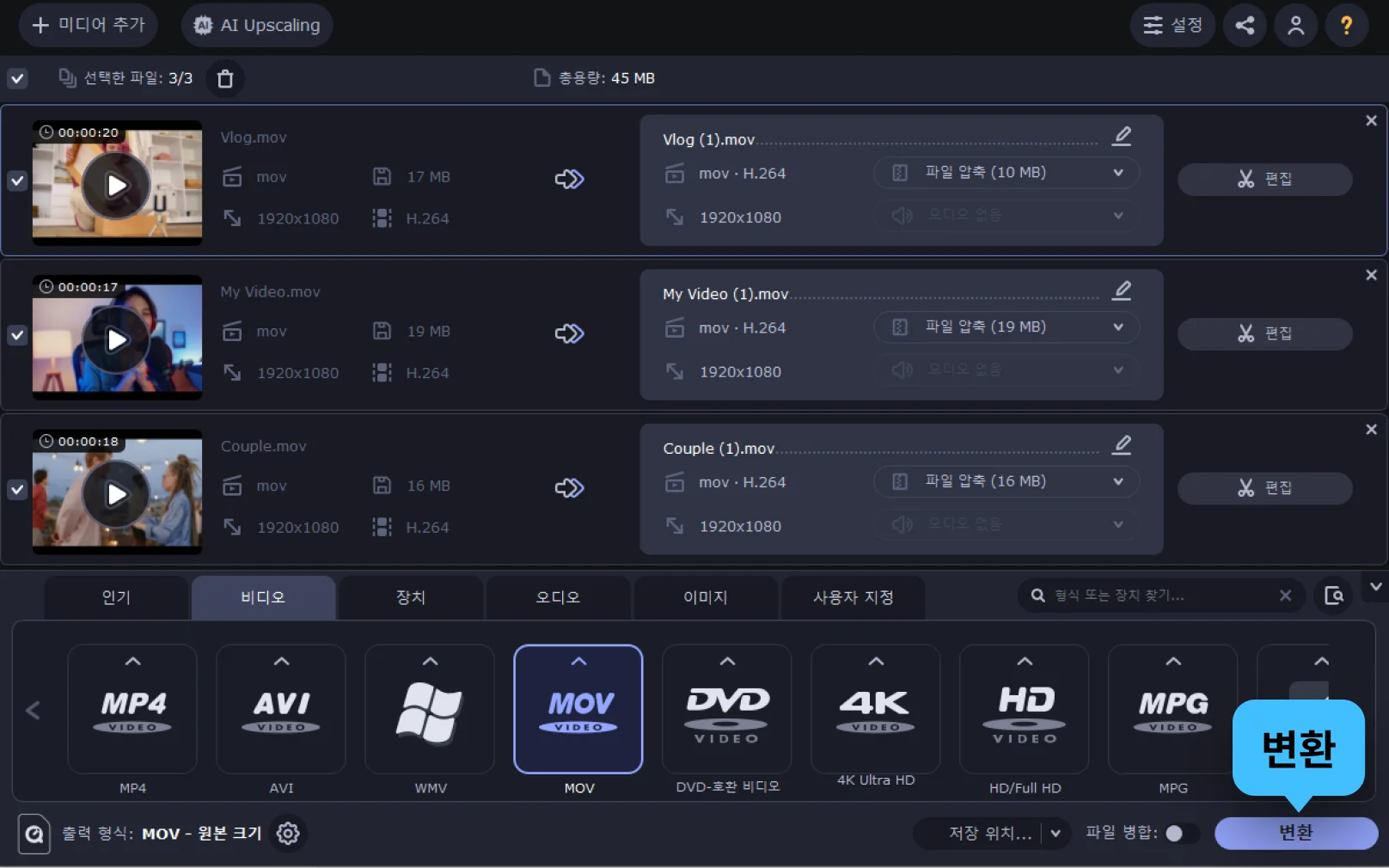 순서 3. MOV 파일 압축 및 다운로드
