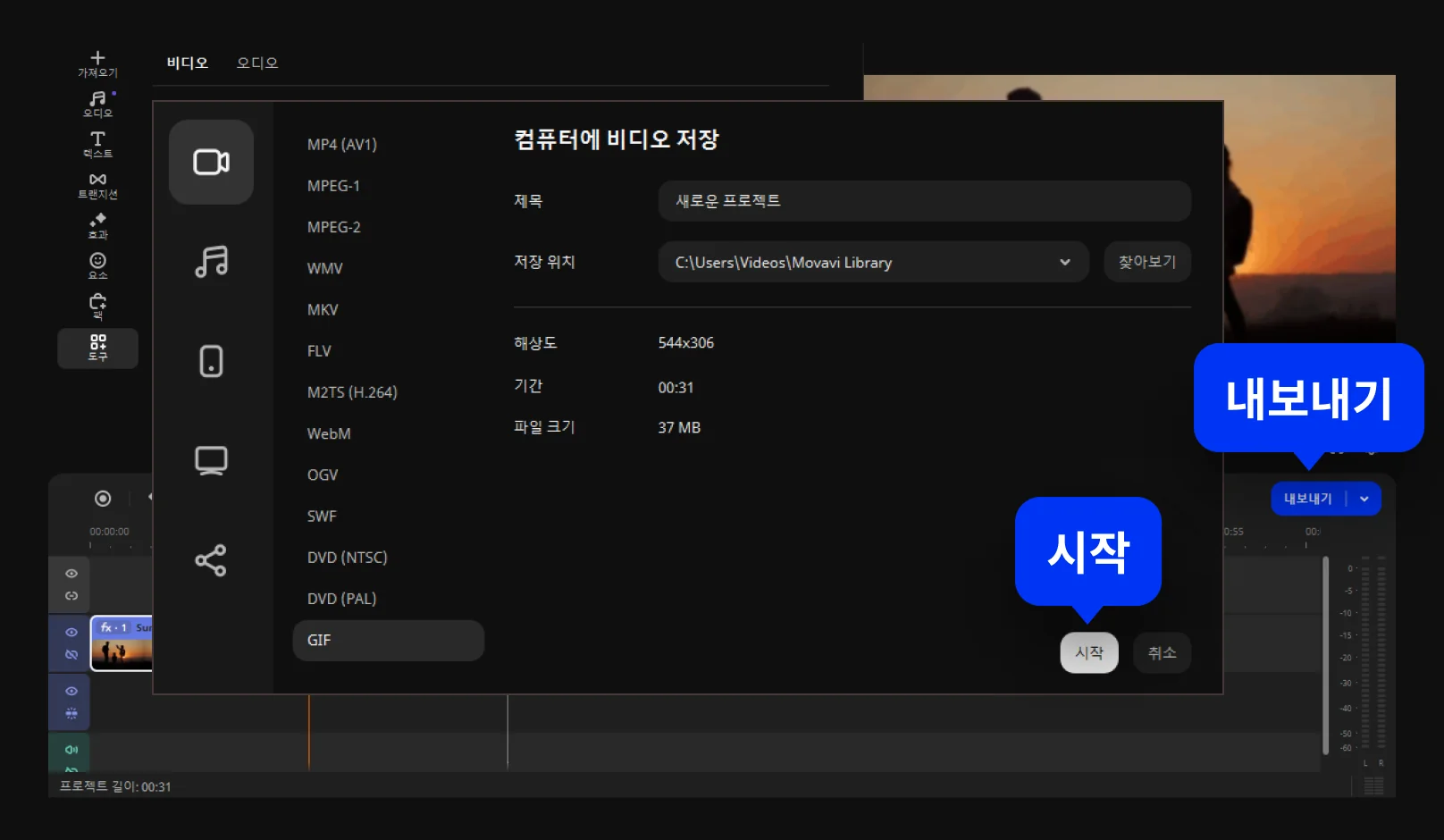 Movavi Video Editor는 초보자도 쉽게 사용할 수 있는 영상 편집 프로그램으로, GIF 자르기뿐만 아니라 자막 추가, 효과 적용, 길이 조정 등 다양한 편집 기능을 제공합니다. 직관적인 인터페이스로 누구나 빠르게 편집을 시작할 수 있습니다.