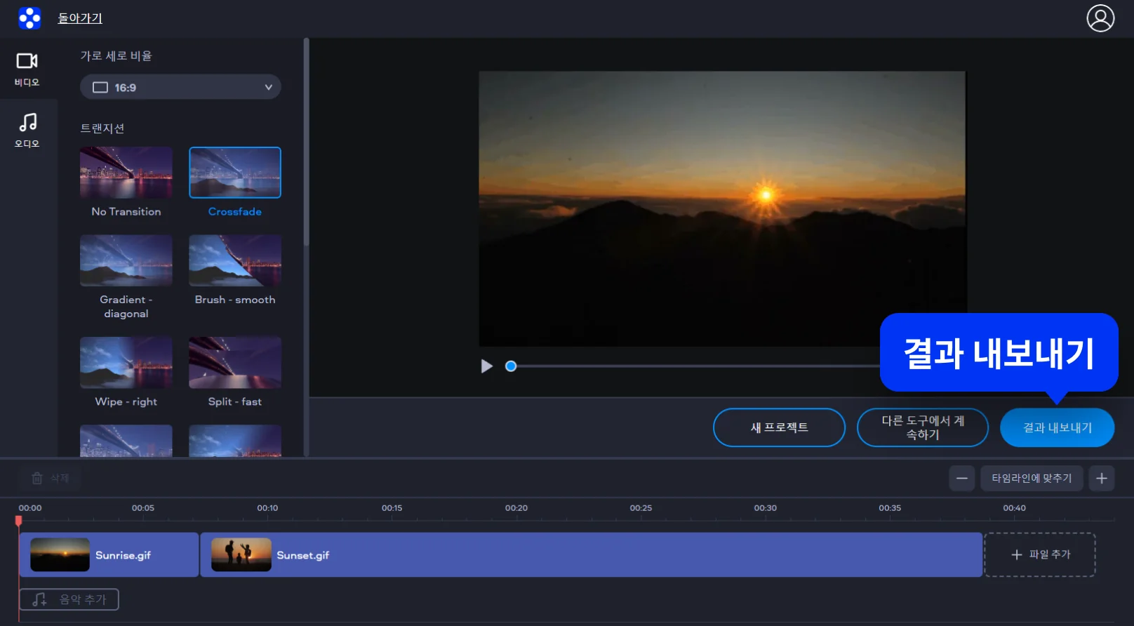편집이 완료되면 결과 내보내기 버튼을 클릭해 최종 파일을 저장합니다.
