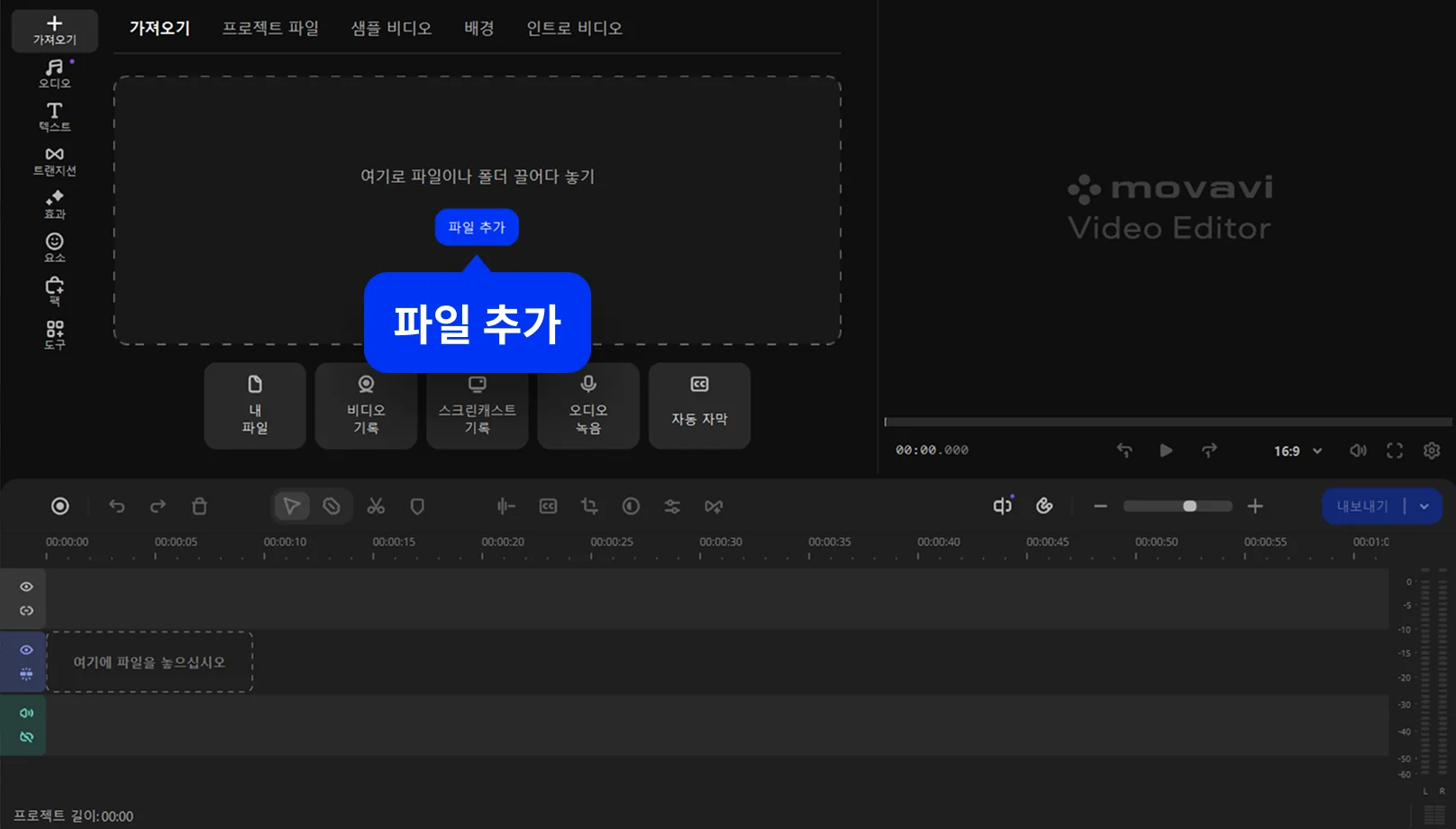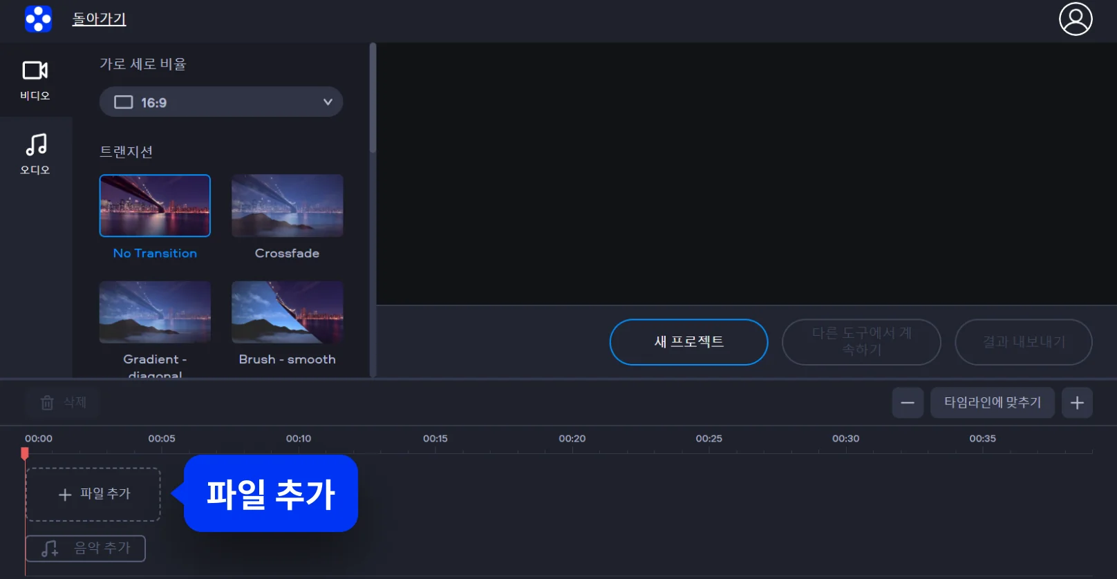 Movavi의 무료 온라인 도구는 설치가 필요 없는 온라인 동영상 편집 사이트로 누구나 손쉽게 영상을 편집할 수 있습니다. 다양한 트랜지션 효과, 무료 음악 라이브러리, 간편한 인터페이스로 순식간에 감각적인 영상을 완성해 보세요.