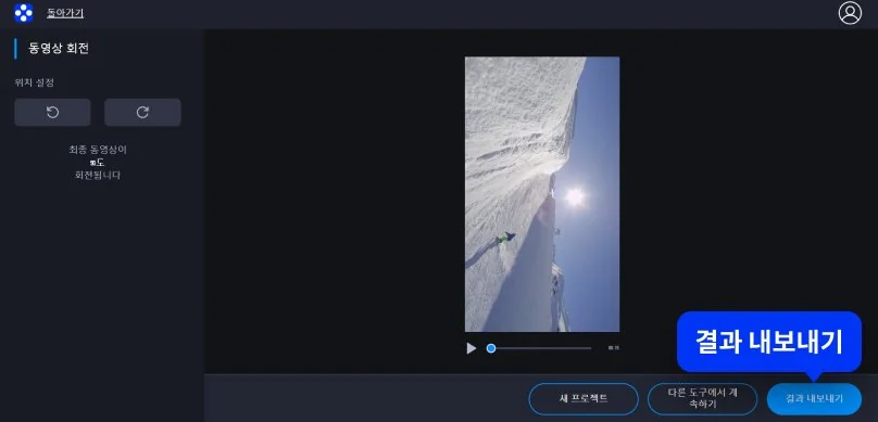 방향 설정이 완료되면 결과 내보내기 버튼을 클릭해 파일을 저장합니다. 이 과정을 통해 동영상 회전시켜서 저장하기가 완료되며, 즉시 다운로드해 사용할 수 있습니다.
