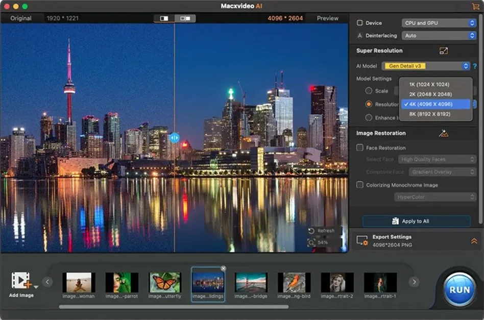 MacXvideo AI feels light and quick, built for people who want results without digging through endless settings. It reads almost any video format and handles 4K clips with no hesitation. When I used it, the AI sharpening and color tools made older footage look noticeably cleaner, especially in low light.