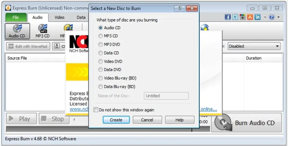 Express Burn was brought to the world by NCH Software. It is a disc-burning and DVD authoring tool that manages audio, video, and data discs. You can burn CDs, DVDs, and Blu-ray discs; create DVDs from video files (MP4, AVI, WMV, MOV, VOB, etc.); copy discs; and generate ISO images.