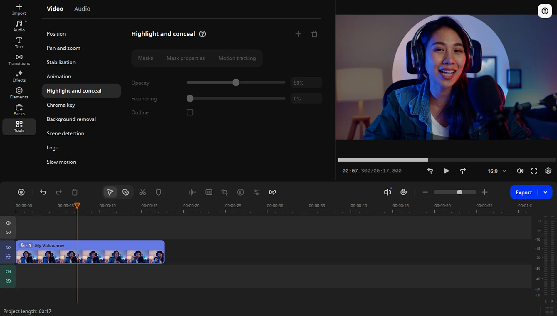 CapCut provides some masking effects with preset shapes that can be placed over your video to hide or highlight a specific area. Although the application's masking feature doesn't natively support motion tracking, users can achieve the same by adjusting the mask's position in each keyframe.